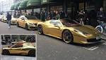 Where else would you park your blingmobile? Fleet of luxury cars painted GOLD lines up outside Harrods